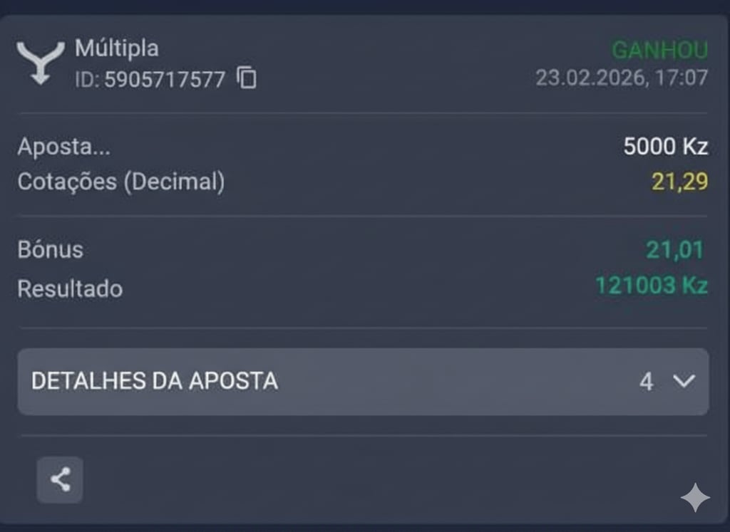 Garanta seu lugar: Entre para a COMUNIDADE VIP da Ficha Certa, receba fichas selecionadas diariamente, estratégias, análises precisas e acesso exclusivo ao grupo mais lucrativo de Angola. Garanta sua vaga agora e comece a ganhar de verdade. As Vagas são limitadas.